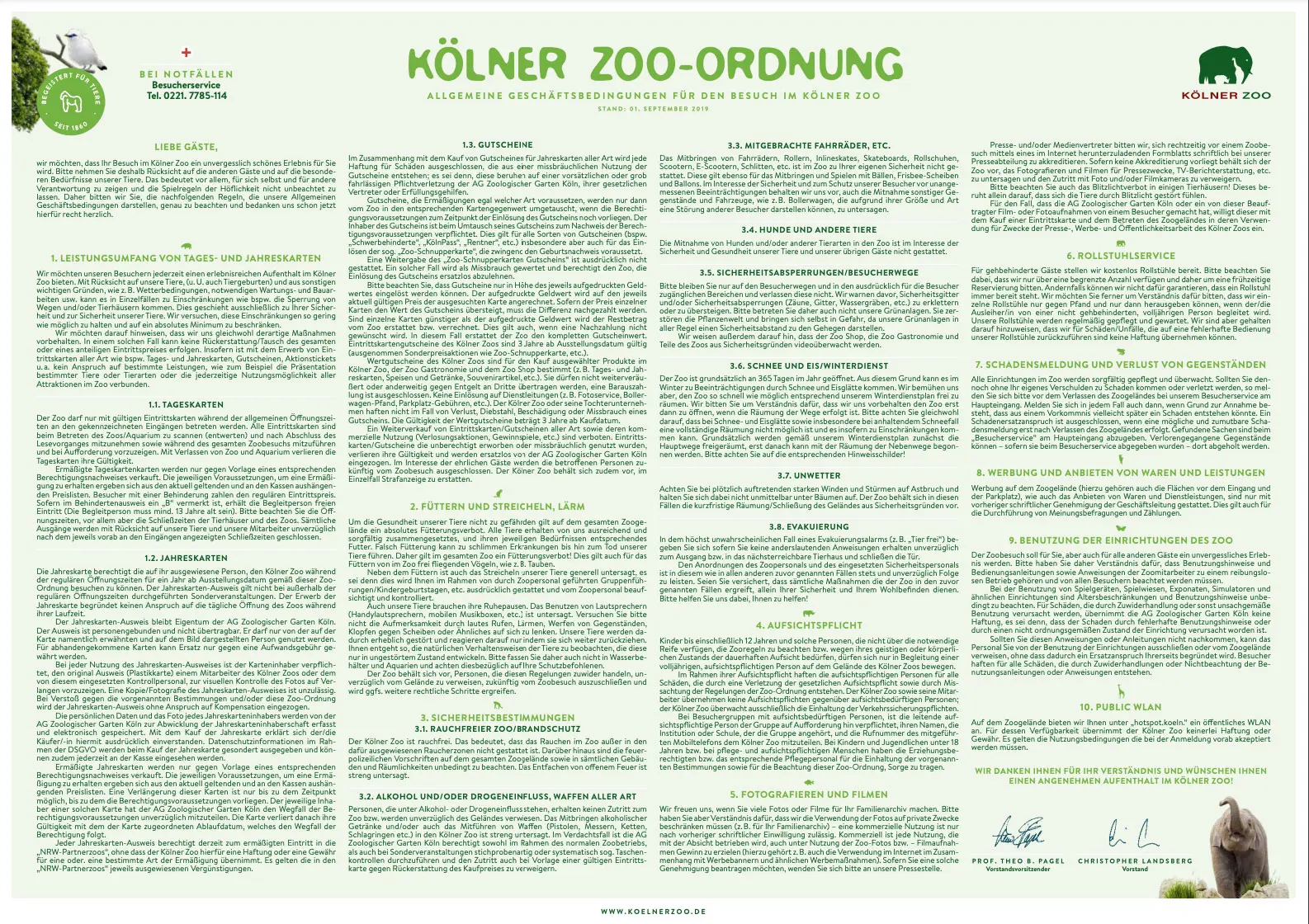Allgemeine Geschäftsbedingungen des Kölner Zoos.